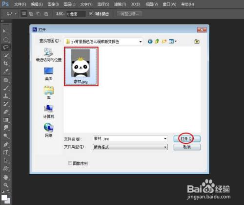 第一步:在ps软件中,按下强伐快捷键Ctrl+O键,打开一张需要将背景颜色设置为渐变色的图泥返联片。