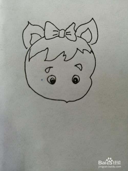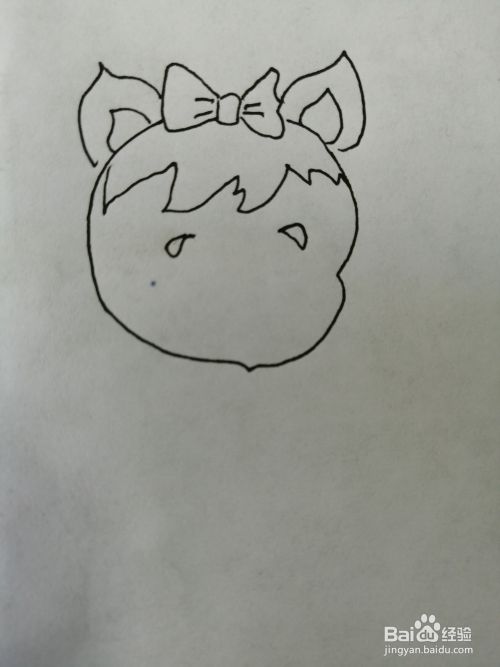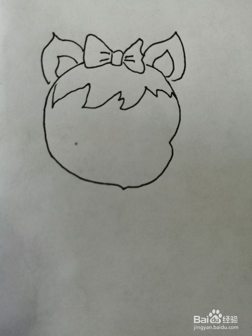 第三步,然后在小猫咪的头部两边画出两只可爱的小耳朵。