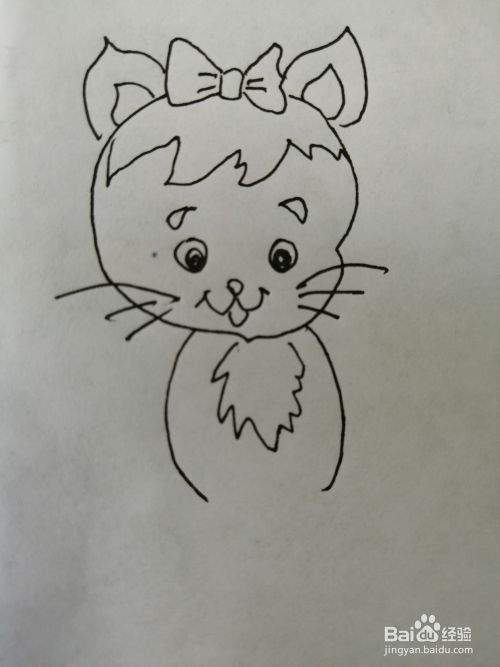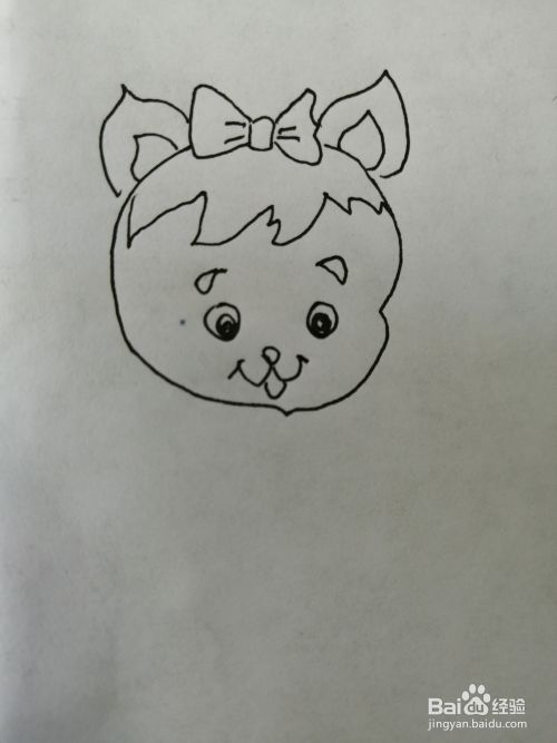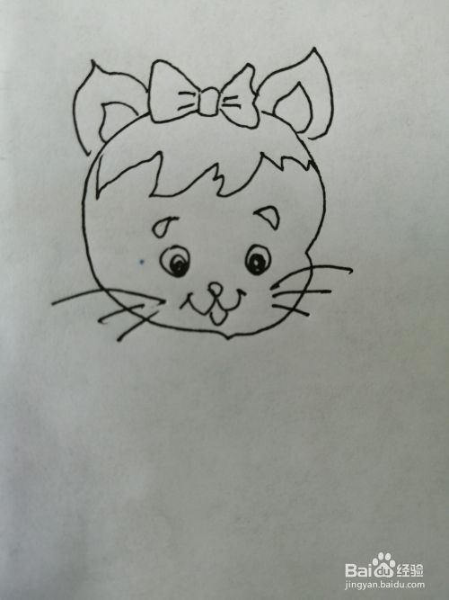 第四步,接着在小猫咪的头发下面画出眉毛和大大的眼睛。