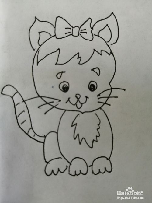 第八步,最后把可爱的小猫眯的弯弯的尾巴画出来来。可爱的小猫咪就画好了。