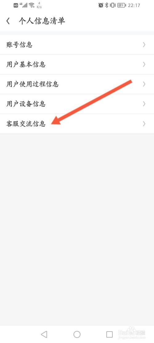 点击个人信息清单选项。