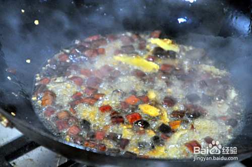锅中倒入适量水,小火煮一下,把辣椒的味煮出来。