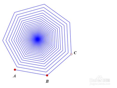 选择AB,构造迭代,迭代规则是A->B,B->C,迭代深度为6,结果如下图,正七边形。
