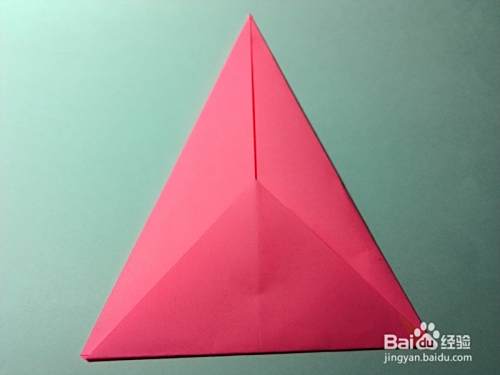 底角沿着三角形的底边向上折,两边在对折,如图。