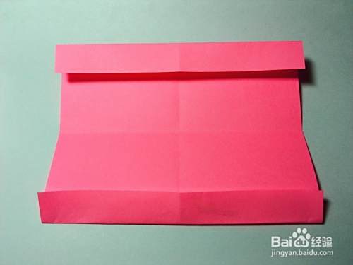上下两边向中间折,展开显示折痕,在将上下两边对齐折痕折叠。