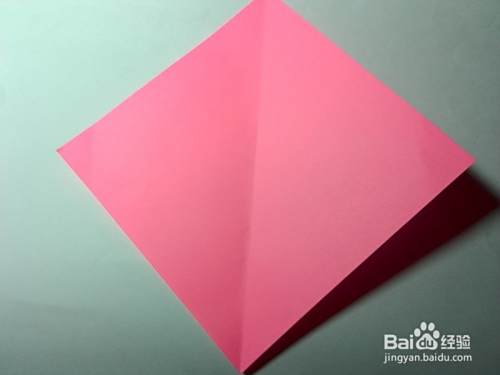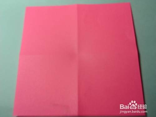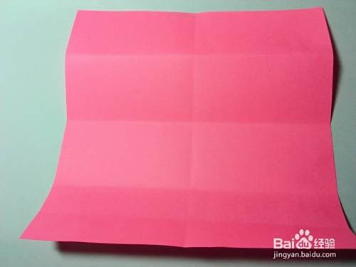 再取一张正方形彩纸,十字对折,展开显示折痕。