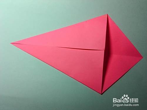 顶角向左折,展开看到折痕。顺向折痕将顶角向翻折。