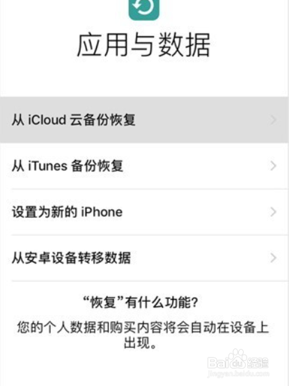 重启iPhone后,可以使用iCloud、iTunes恢复备份或设置为新的iPhone。