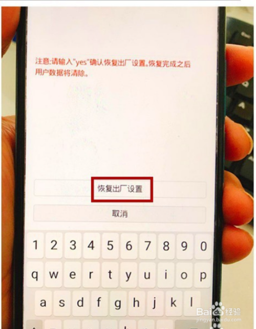 接着手机会提示,让你输入YES后再点击恢复出厂设置。