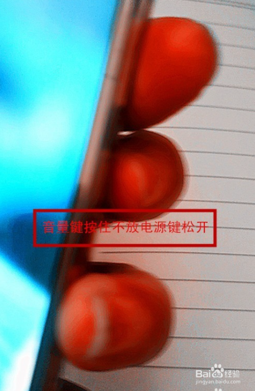 接着在关机状态下,又同时按下音量键和电源键,五秒后,手机会有显示,速度松开电源键,音量键不松开。如图所示;