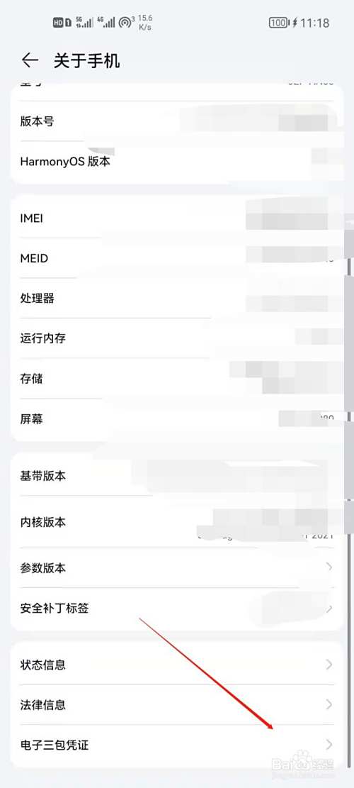 2、进入关于手机后,点击进入状态信息