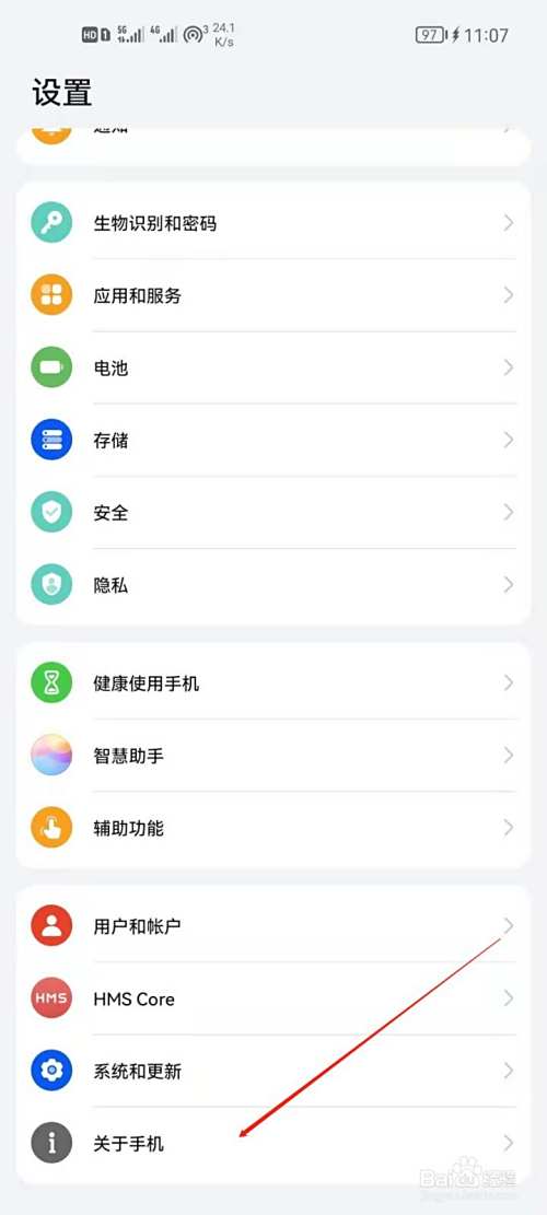 1、打开手机设置,点击进入关于手机