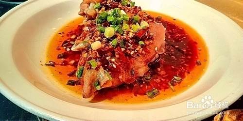 将汁浇在猪蹄上,撤上葱颗即可。
