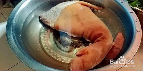 烧了皮的蹄膀,放入清水中浸泡三四个小时。