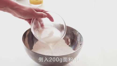 2倒入200g面粉中,和成面团,2g酵母加入50g温水静置2分钟融化,面粉和南瓜泥酵母混合搅拌均匀。