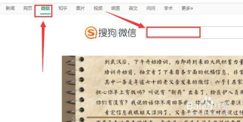 1:打开搜狗引擎,点击“微信”,然后在搜索框输入你要的搜索的关键词。