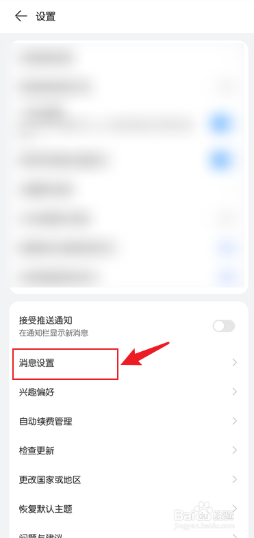 2、在设置中,点击【消息设置】,点击【谁可以给我发私信】