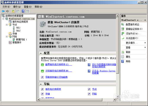 (1)在“故障转移群集管理”窗口,在“操作”菜单点“创建一个群集”,从而启动“创建群集向导”。