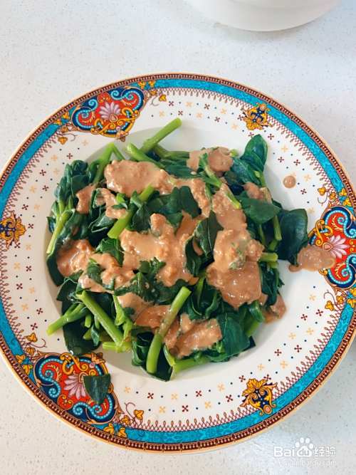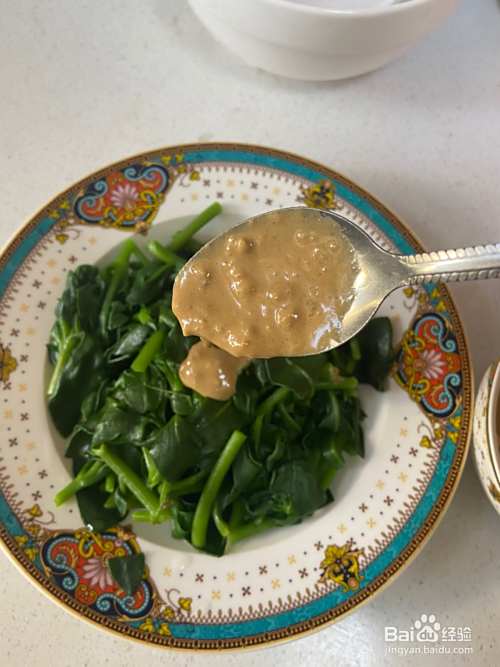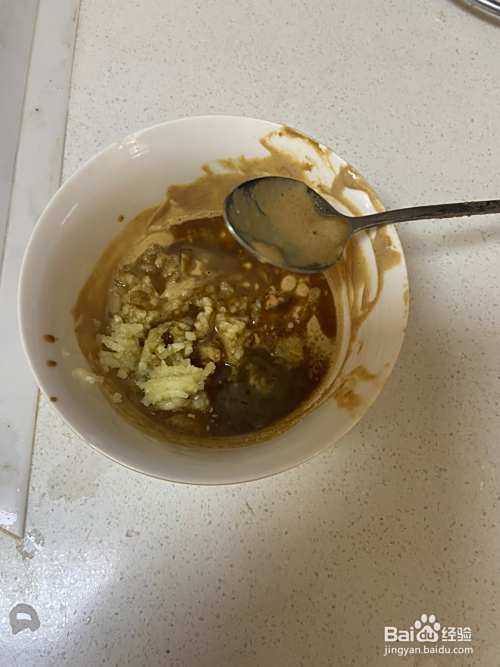 放香醋生抽盐和大蒜泥搅拌均匀成麻酱