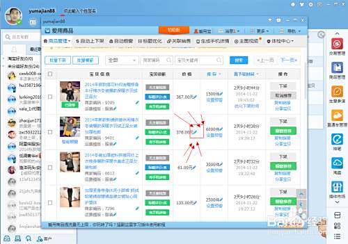 如果想修改网点内任意一款商品的价格,如图点击红色箭头所表示的位置
