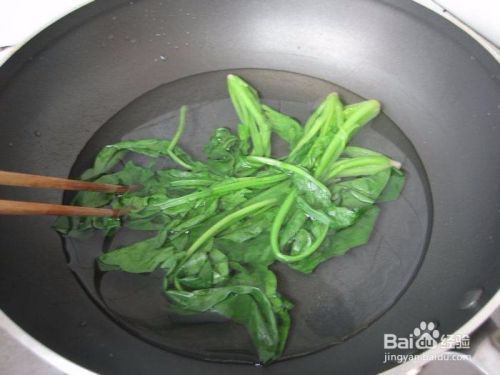 2菠菜用开水烫一下捞出,放在凉水里过凉后沥干水分。