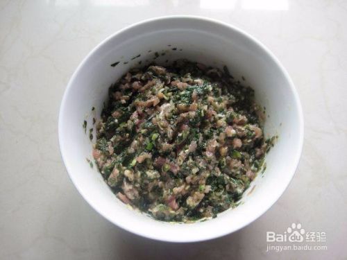 然后把野菜合肉馅混合拌匀。