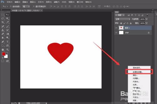 我们在画布上画上一个爱心,然后点击图层面板下方的fx,找到【斜面和浮雕】。