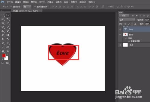 确认无误后,我们再用工具栏的文字工具在爱心上添加文字,设置好字体、大小。
