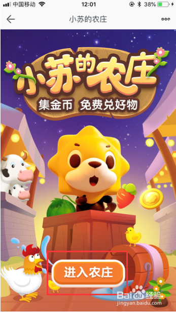 然后就会出现小苏农庄的首页,点击“进入农庄”即可,如图所示。