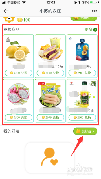 那么,当你的农作物积累的金币到达一定数量之后,还可以兑换相应的商品,也可以添加好友,与好友共同玩农场,相互摘取农作物,如图所示。