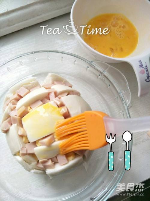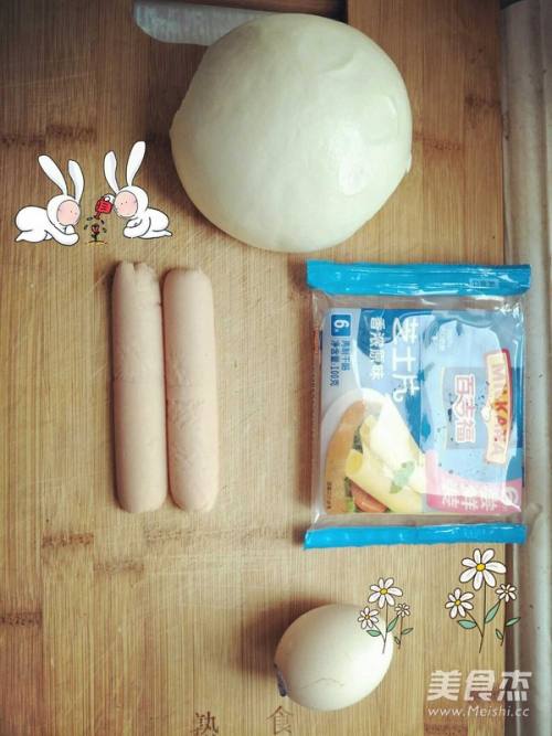 准备好食材,火腿、芝士(一片)、鸡蛋、馒头