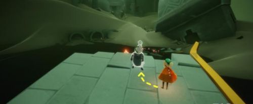 在抱头先祖这个位置,将视角往后调节,然后直接飞到后面的那根石柱右下角,就能找到倒地装死先祖。
