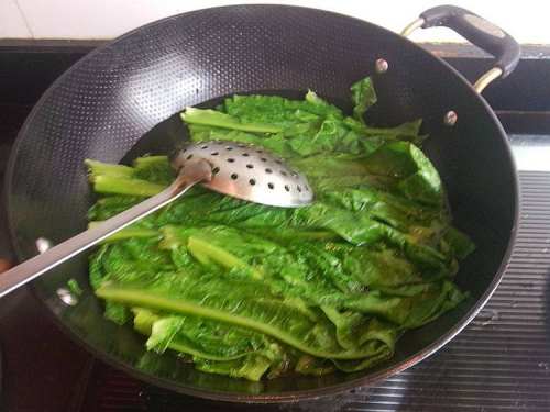 2莴笋叶子洗净,放入开水焯至发蔫,捞出。