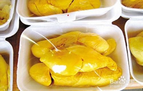3、保鲜膜:然后再使用保鲜膜把榴莲的果肉包起来,然后再放到冰箱内存放,这样也可以使榴莲保存一段时间不变质。