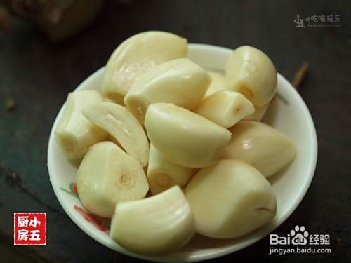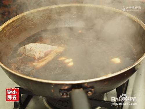 锅里下水,下香料包、蒜头、生抽与白糖,煮开。