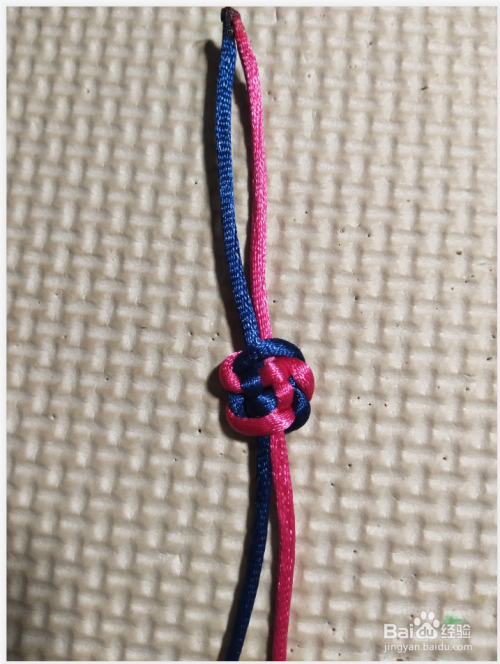 拉紧,耐心整理一下,将结体拉紧,竖藻井结就完成了。