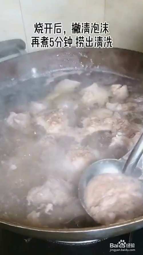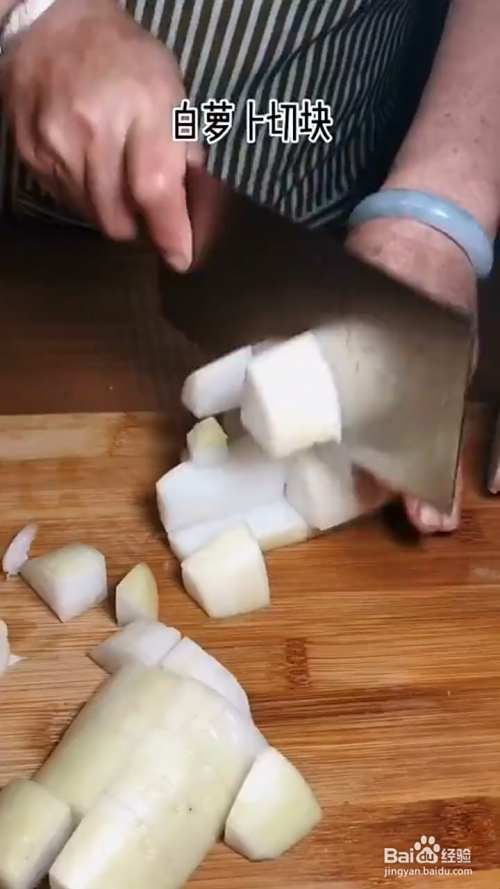 两百克白萝卜切块,500g羊肉,冷水下锅,放入10g姜片,10g料酒,10g盐,烧开后撇去泡沫,再煮五分钟,捞出洗净