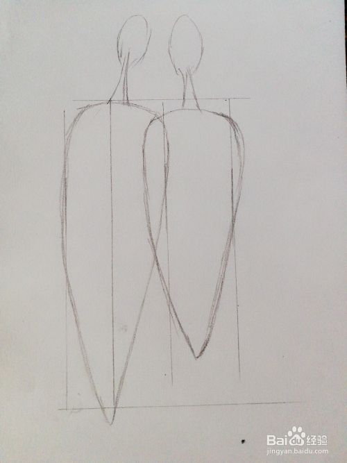 2、通过长方形可以画出一根长的胡萝卜,跟一根短的胡萝卜大致外轮廓。