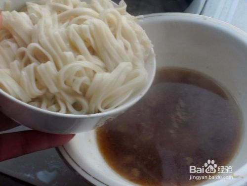 在面条碗内加2大勺烧好的牛腩汤