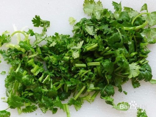 香菜洗净,切碎,备用