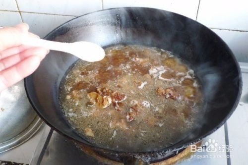 倒入半盘红焖牛肉,大火烧开