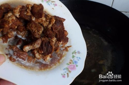 将半碗红焖牛腩的肉冻,准备好