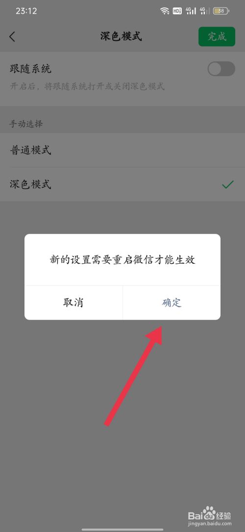 最后看到一个深色模式点勾选,再后来点确定就ok了。