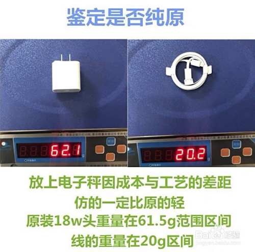 第一个方法:家里有电子秤的直接放上去。仿的重量在59 60左右,原装的61.5往上。因为工艺和成本的差距原装一定更重。