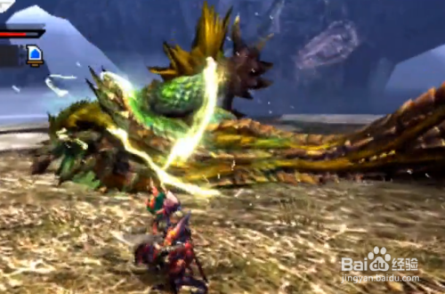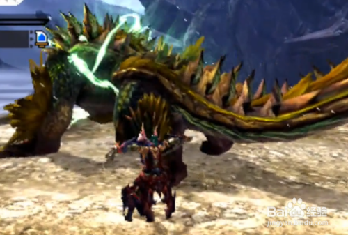 最后觉醒状态的金雷公雷狼龙会两次拍击地面,然后如果你在它正前方,它会释放雷龙抬头,伤害非常高,我们要做的还是转圈攻击