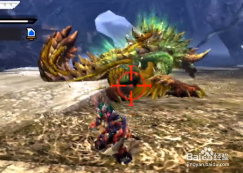 然后金雷公雷狼龙的头、背和后腿是弱点,我们要做的是绕后攻击金雷公雷狼龙的两条后腿,它每次攻击的硬直时间很短,我们只能不断围着它转圈攻击一次它的后腿,再回避转圈