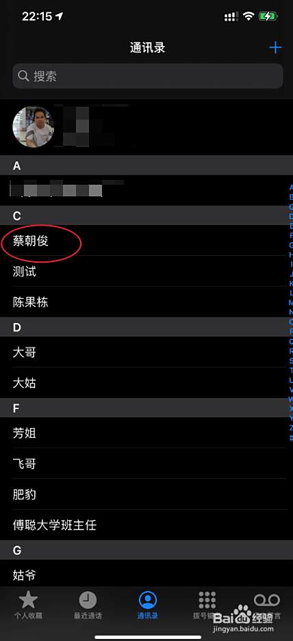 打开电话,点选一个人名。