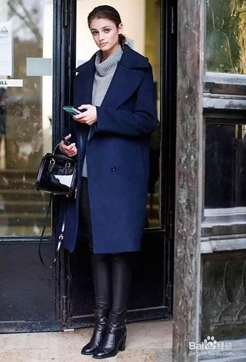 雾霾蓝色大衣内搭黑色短款修身连衣裙,不但能够很好的彰显出个人完美的身材,同时又比较的性感,在一定程度上非常具有女性独特的韵味美,而且也能比较好的凸显出个人优雅的时尚范。