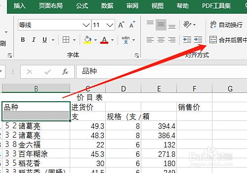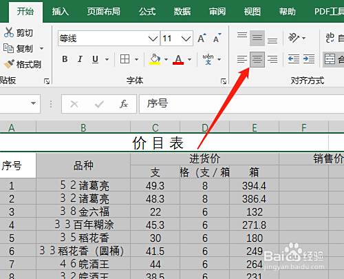 5. 选定两个单元格单击合并,选定所有资料居中。