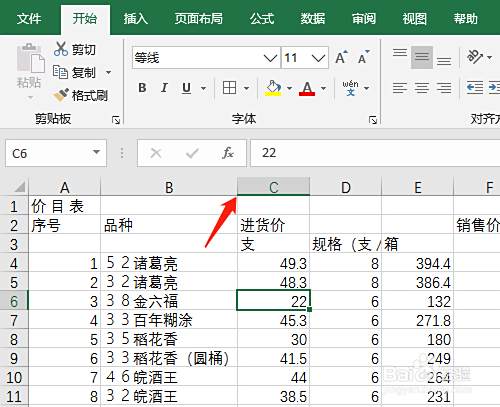 3. 单元格中输入文本资料,注意选对单元格输入文字。